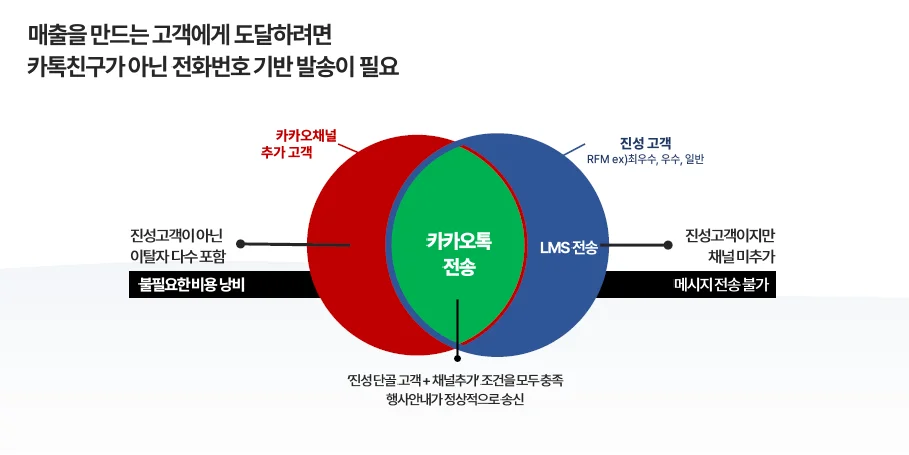 시스템이 자동으로 고객 수신 여부를 분류해서 보내주기 때문에, 실무자가 수신 여부를 일일이 확인하거나 다시 보낼지 고민할 필요 없이 도달을 최대한으로 끌어낼 수 있도록 작동하는 구조예요.