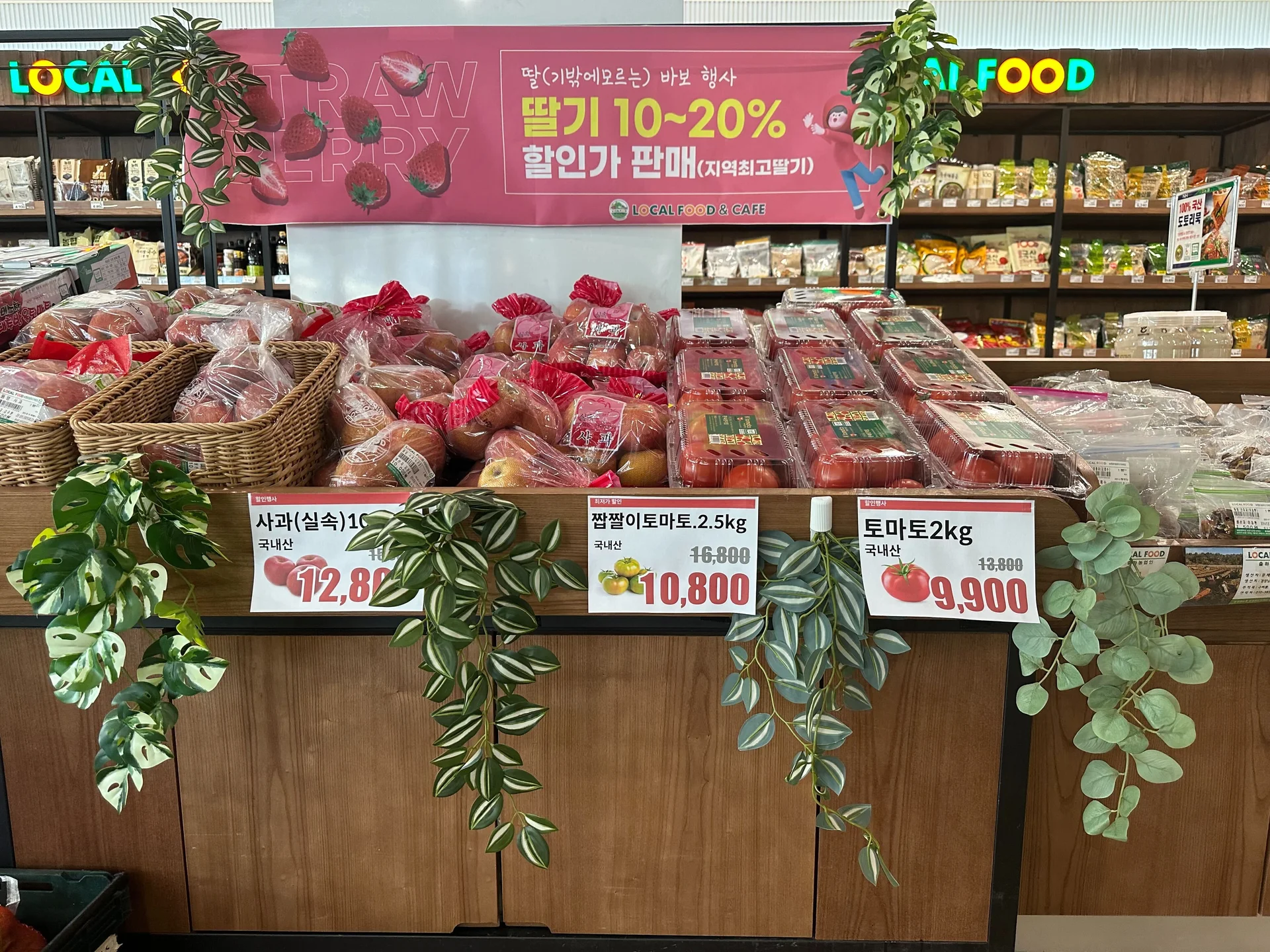 그리고 저희 매장은 화요일마다 장터를 열어요. 동네에서 쉽게 보기 힘든 가격으로 물건을 내놓고, 지역 주민들하고 같이 가는 개념이죠. 그리고 그냥 마트가 아니라 지역 사랑방 같은 역할을 해요. 어르신들 모이시고, 주민분들이 커피도 드시고요. 카페랑 로컬푸드 매장이 합쳐진 복합 매장이라서 이런 형태 자체가 굉장히 특색 있다고 생각해요.